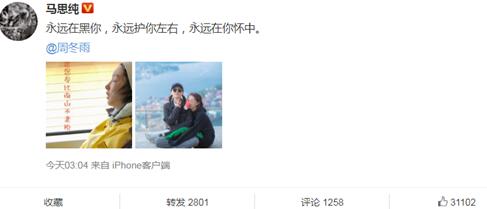 1月31日是周冬雨的生日,好姐妹马思纯发微博为周冬雨庆生,瞬间登上了微博热搜,引来了很多网友的围观。