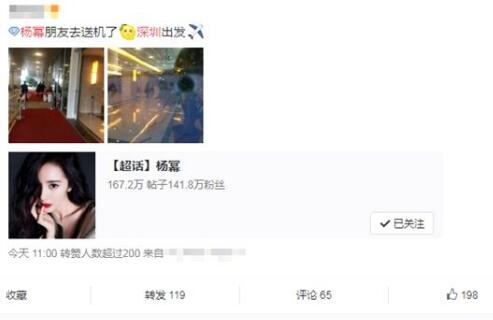 3月1日,杨幂的一位粉丝爆料称在深圳机场偶遇杨幂,当时的杨幂准备搭乘飞往成都的飞机,很多人都十分的好奇,为什么杨幂会出现在深圳的机场?原来杨幂春节期间同样工作繁忙,脱不开身,导致了她没能陪伴小糯米,所以在前几天,杨幂就选择了秘密飞往香港,去和小糯米享受快乐的时光。