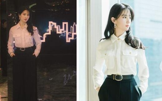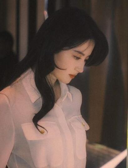 当天网友晒出的生图,和精修相比也丝毫没有崩!白衬衫+黑色阔腿裤,这一身真的超级衬她,没有修图效果下刘海给人感觉也很清爽。