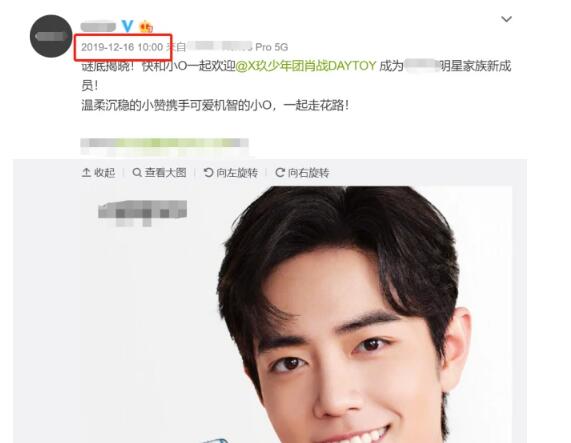 我们翻看某品牌的社交平台,发现去年12月16日,该品牌刚刚签约肖战,作为旗下某款手机的代言人。